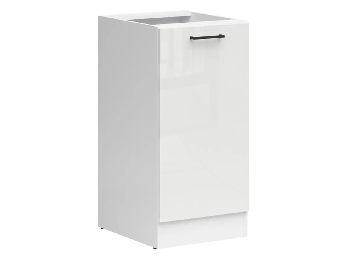 The Junona Line base cabinet combines minimalist style with a timeless aesthetic. The white body and glossy cream-white doors create a bright, modern atmosphere that visually expands any kitchen. A simple handle completes the look with understated elegance.