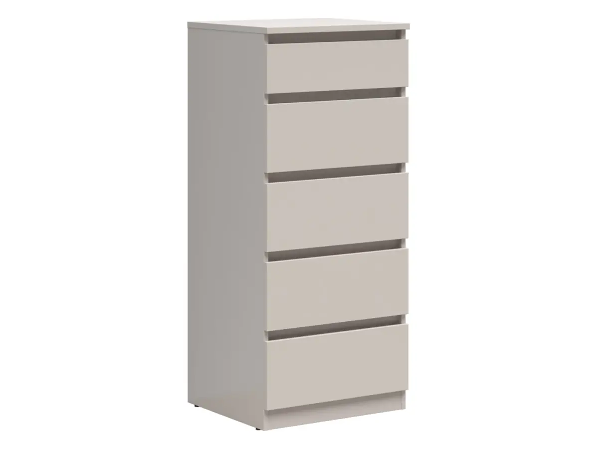 Komoda Tetrix łączy nowoczesny design z dużą ilością miejsca do przechowywania. Pięć szuflad oferuje miejsce na wszystko, co warto mieć pod ręką, a bezuchwytowe otwieranie nadaje meblowi minimalistyczny i estetyczny wygląd.