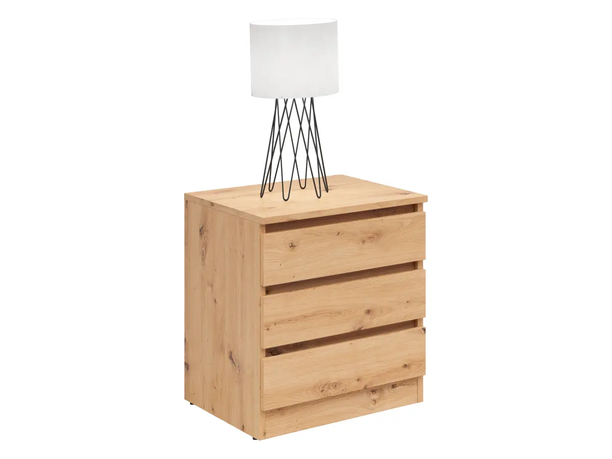 Trzy szuflady, które ułatwiają utrzymanie porządku: miejsce na książkę, słuchawki i całą resztę drobiazgów. Wykonany z płyty wiórowej 16 mm, jest solidny i trwały – idealny do codziennego użytku.