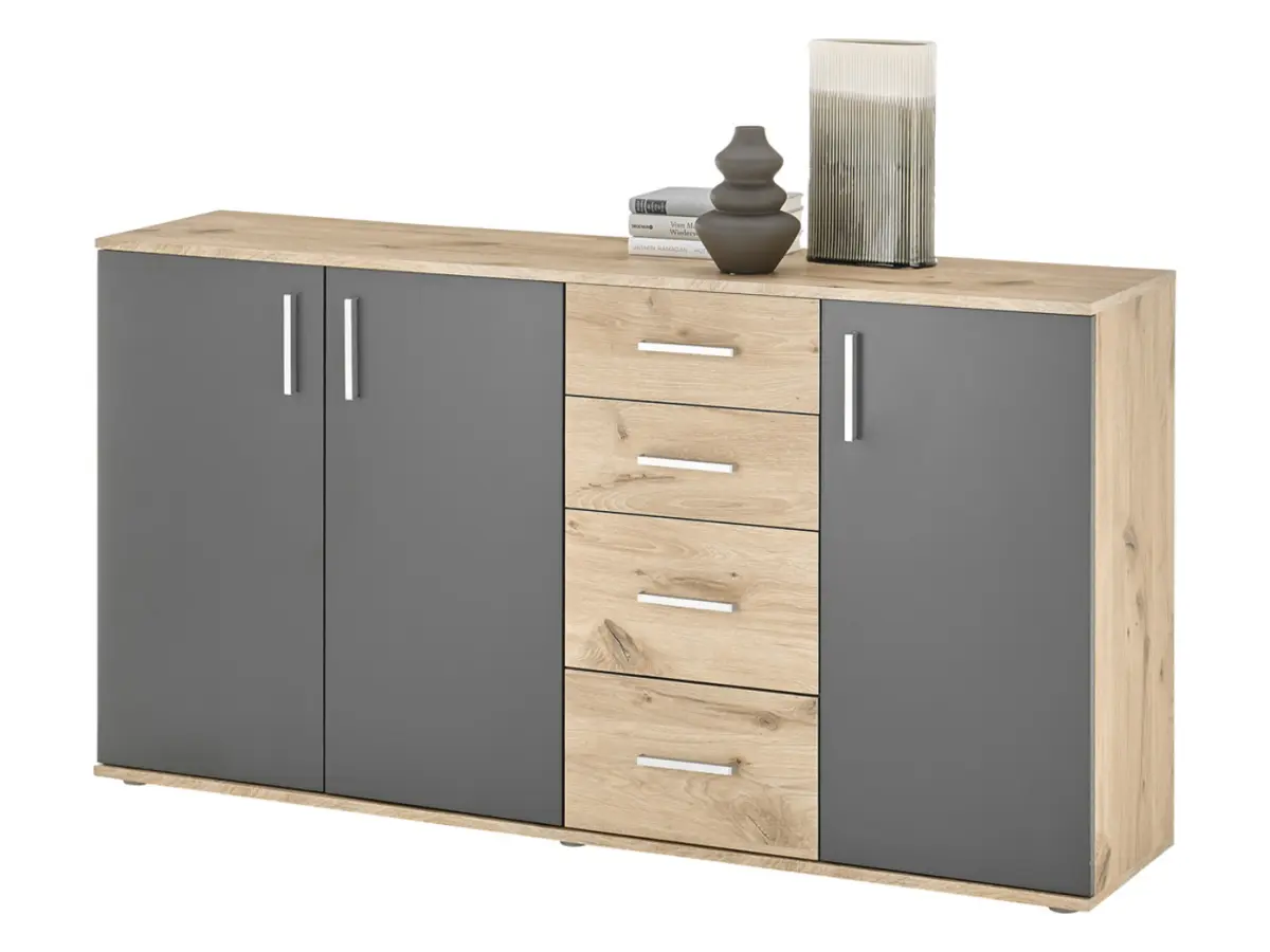 Cómoda BC 160 cm con 3 puertas y 4 cajones roble viking/gris