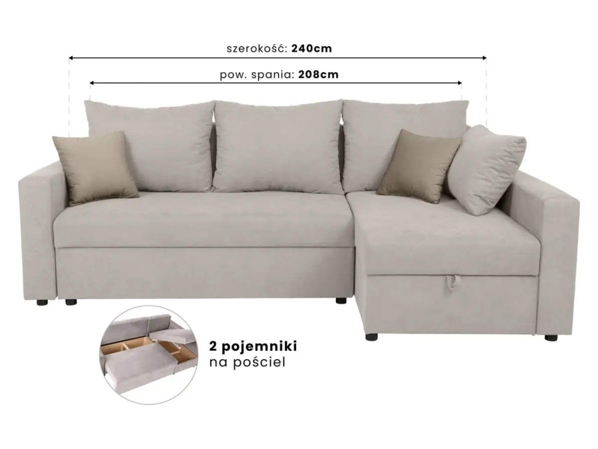 Con dos amplios compartimentos para ropa de cama, Przemek IV Lux mantiene el salón ordenado sin renunciar al estilo. El mecanismo de apertura es suave y rápido: preparar la cama para los invitados solo lleva unos segundos.
