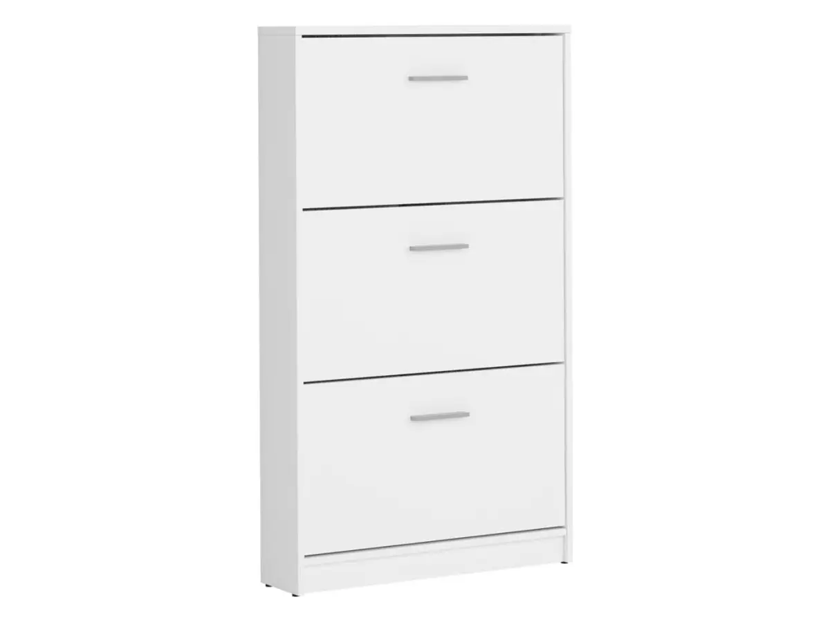 Tres compartimentos independientes para que cada par de zapatos tenga su lugar: separa el calzado de adultos y niños, el de invitados y residentes, o simplemente organízalo por tipo. Las puertas abatibles hacia abajo y los tiradores sencillos permiten un acceso rápido y cómodo al interior.