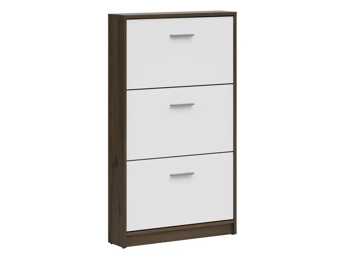 La combinación de roble noble con frentes blancos da a esta zapatero un aspecto moderno y luminoso, perfecto para entradas pequeñas. Su perfil compacto no ocupa espacio, pero su presencia transforma el recibidor.