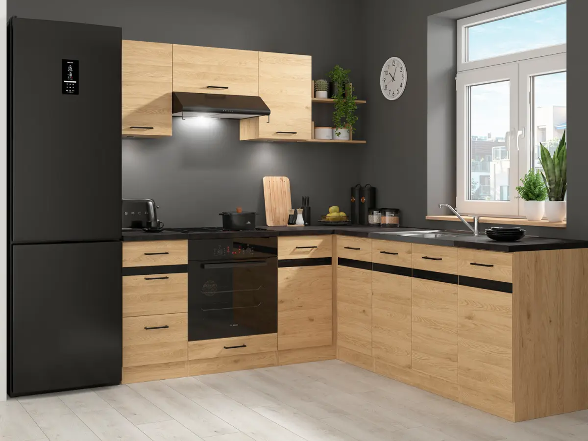 Conjunto de cocina de rincón Junona Line 200x220 izquierdo roble bernstein con encimera