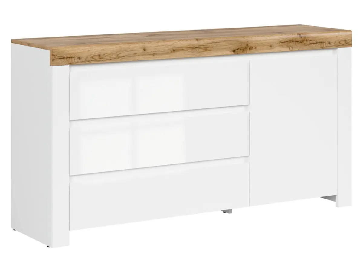 Cómoda Holten 156 cm con puertas y 3 cajones blanca/roble wotan