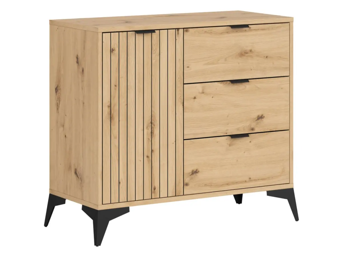Cómoda Lamea 90 cm con puertas y 3 cajones roble artisan