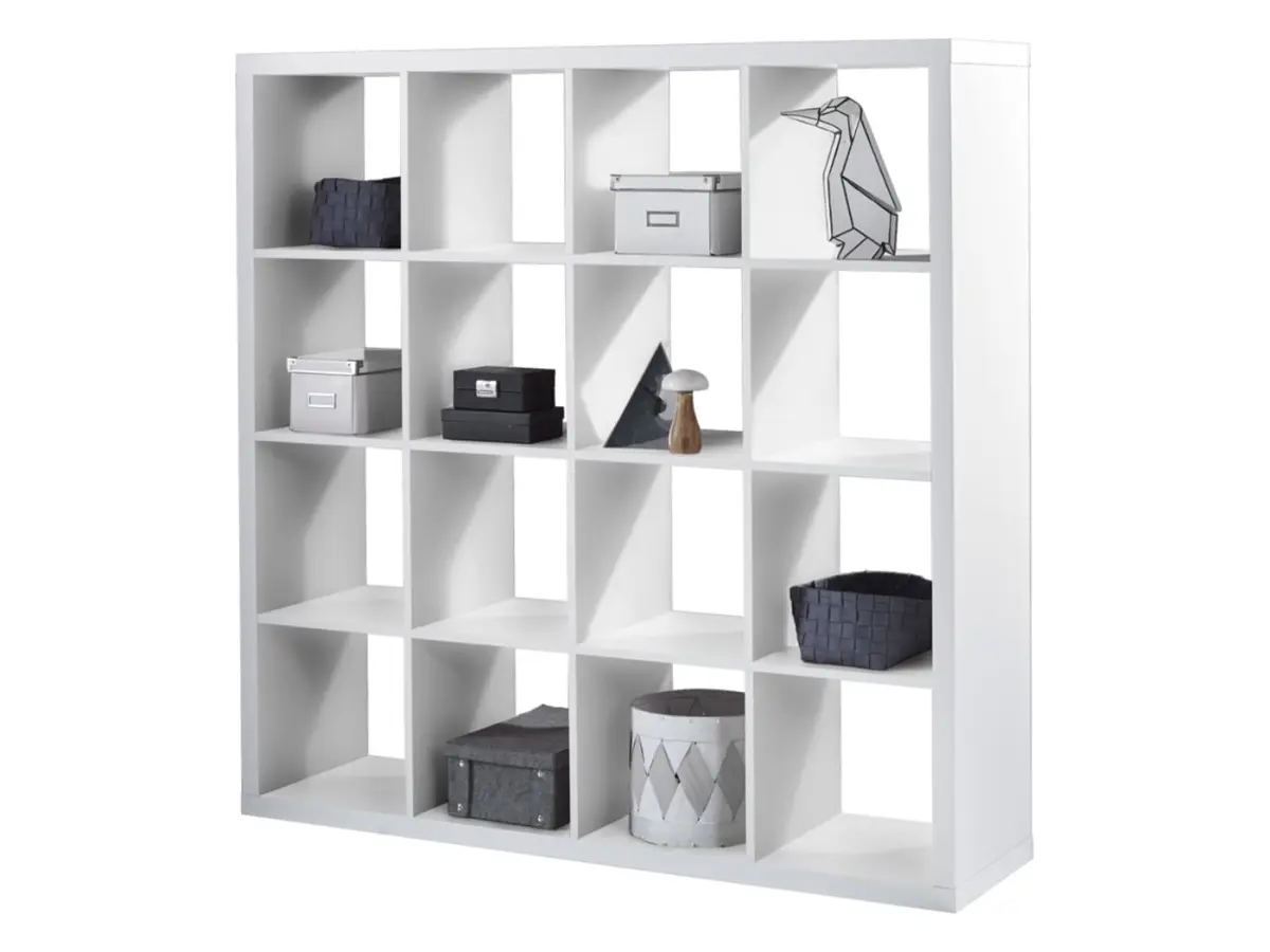 Con 16 estantes, dispondrás de todo el espacio necesario para organizar libros, documentos, plantas o decoración. Cada objeto encuentra su lugar sin que el conjunto pierda ligereza visual.