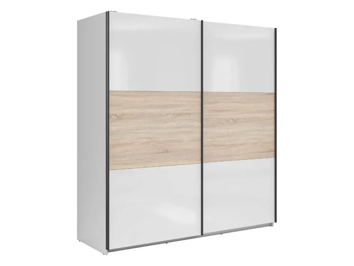 Armario de puertas correderas Tetrix 183 cm blanco brillo/roble sonoma
