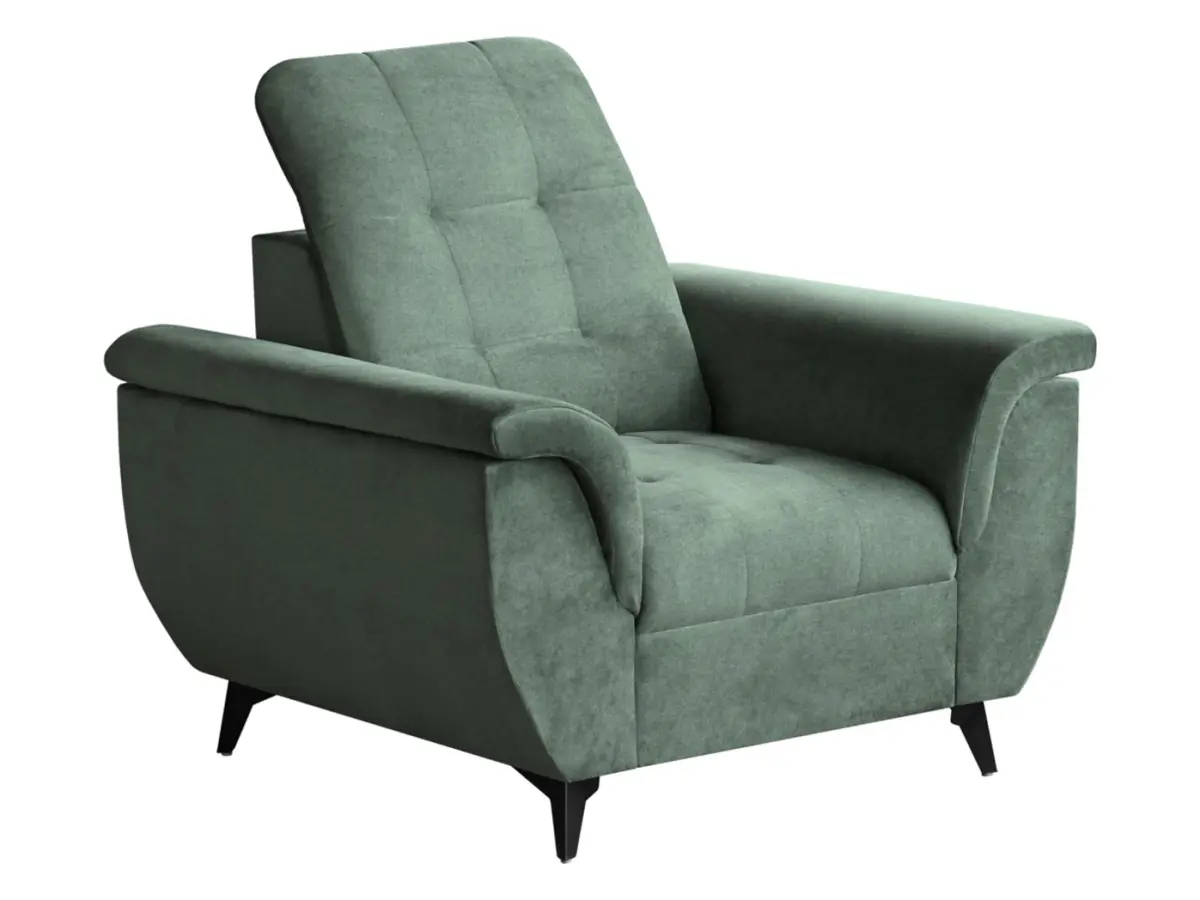 El terciopelo no es solo estético: es suave y agradable al tacto, invitando al descanso. Las estilizadas patas metálicas aportan ligereza visual al conjunto sin renunciar a la estabilidad y durabilidad exigidas en un mueble de uso diario.