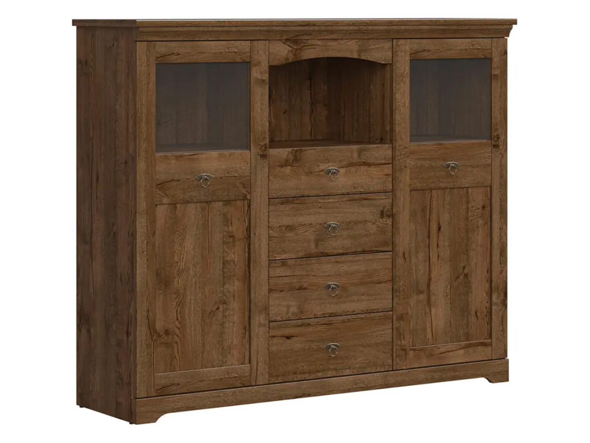 Cómoda Patras 153 cm vitrina con 2 puertas y 4 cajones roble april