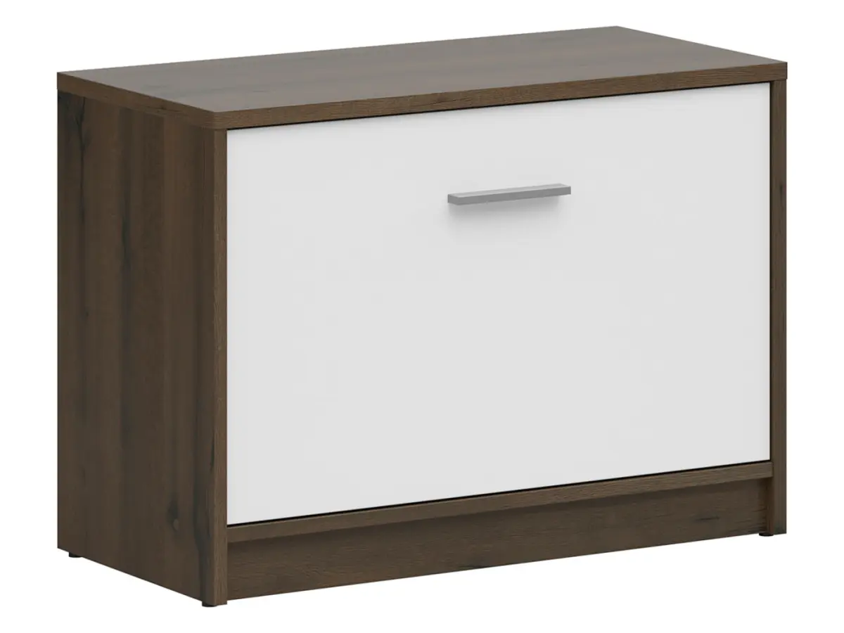 La puerta abatible permite un acceso fácil e intuitivo al calzado, sin agacharse de más y sin complicaciones. La superficie laminada resiste arañazos y cambios de temperatura, algo muy útil en una zona de paso donde el mobiliario tiene mucho trote.