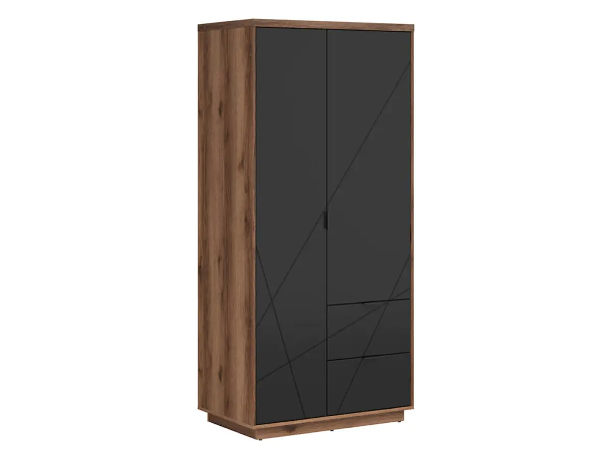 Armario de dos puertas Forn con cajones roble delano oscuro/negro mate