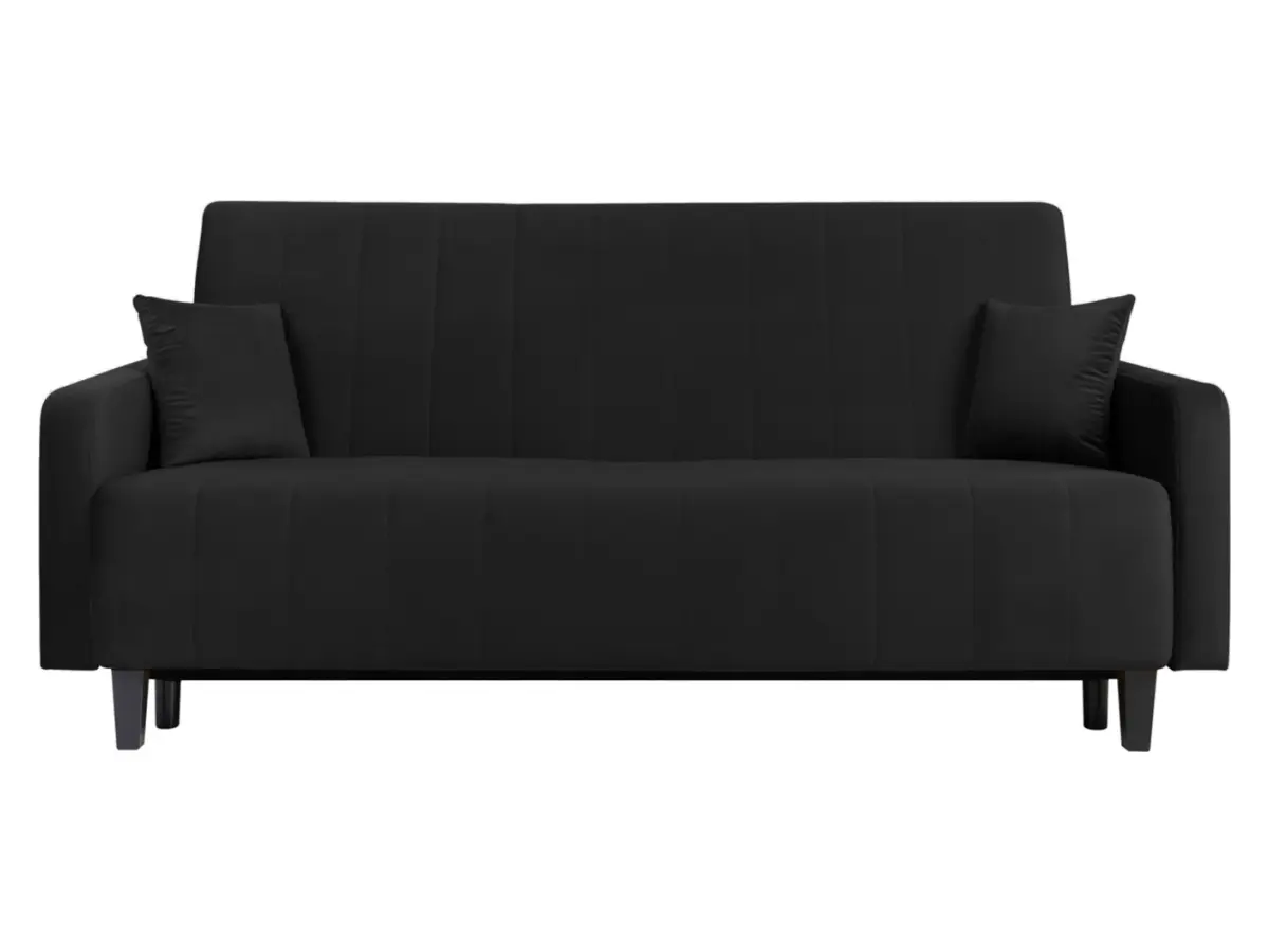 Sofá cama de tres plazas Marcia con arcón de terciopelo grafito