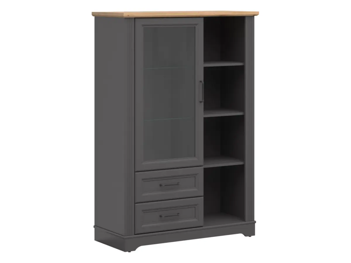 Vitrina Tolmin 100 cm con puertas y 2 cajones grafito/roble artisan