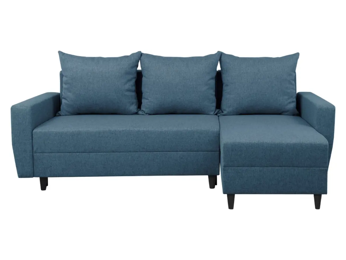 Sofá rinconera universal Malin convertible con arcón tejido trenzado azul