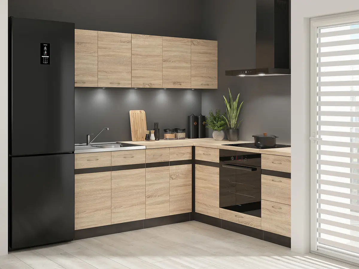 Conjunto de cocina de esquina Junona Line 200x200 izquierdo roble sonoma con encimera