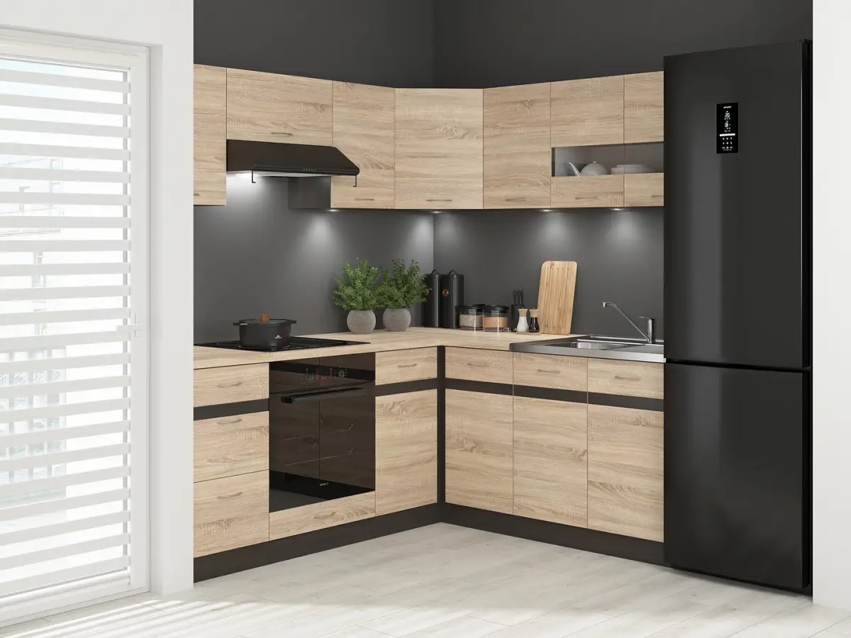 Conjunto de cocina de esquina Junona Line 200x180 izquierdo roble sonoma con encimera