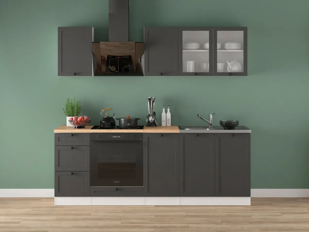 Junona Line está disponible en varios acabados: desde el blanco clásico hasta cálidos tonos madera y combinaciones con grafito. Sea cual sea tu estilo, esta cocina encajará de forma natural en tu hogar.