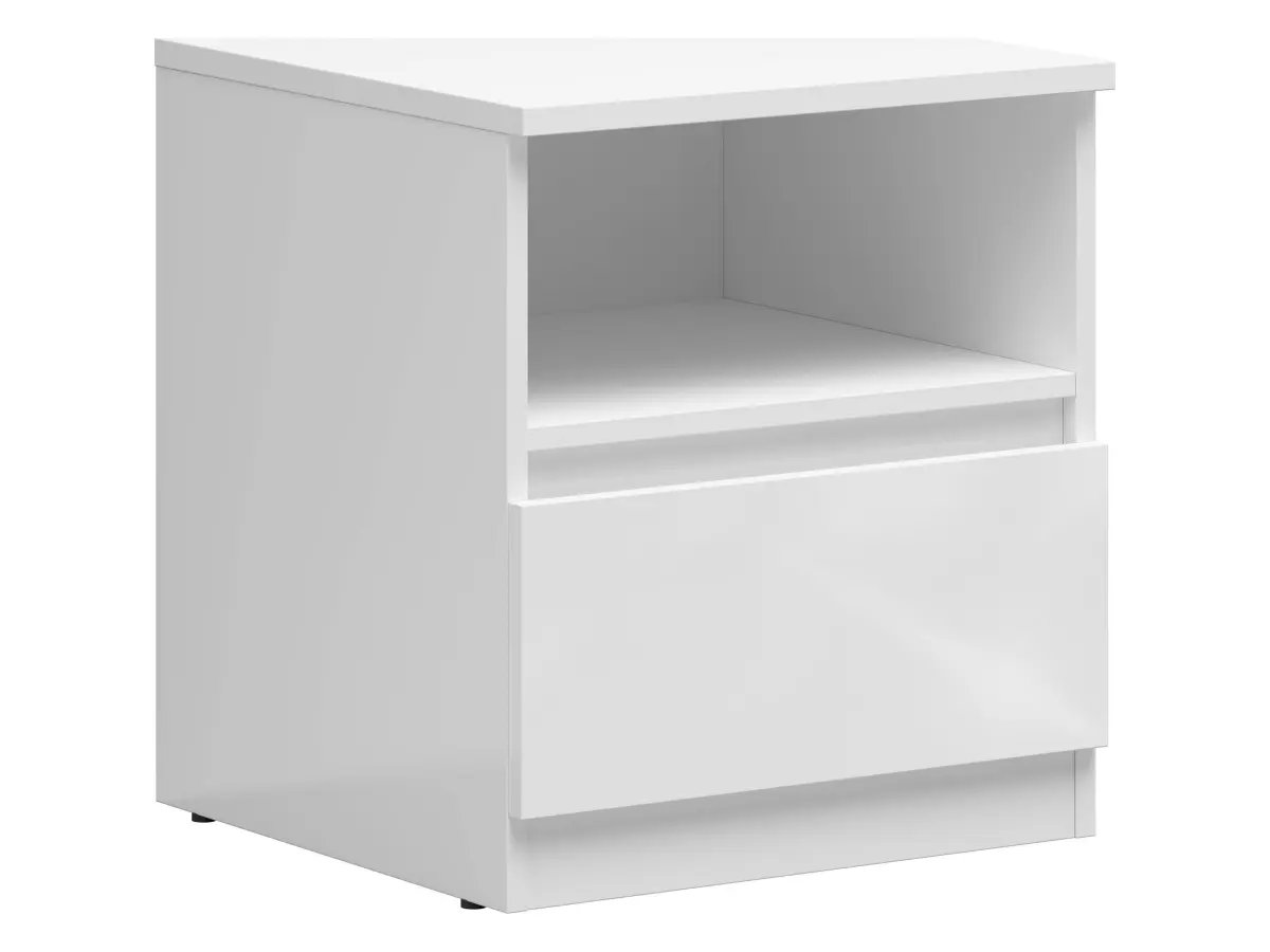 Un rincón ordenado junto a la cama marca la diferencia al final del día. La mesita Tetrix tiene espacio para el despertador, el móvil y tu lectura actual — todo a mano y sin complicaciones. Su apertura sin tiradores le confiere un aspecto limpio y moderno.