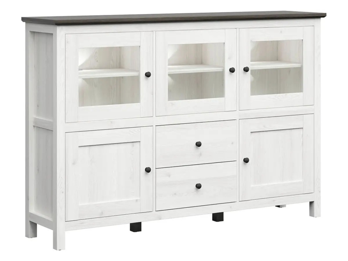 Cómoda Hesen 186 cm vitrina con 5 puertas y 2 cajones alerce sibiu claro/pino larico