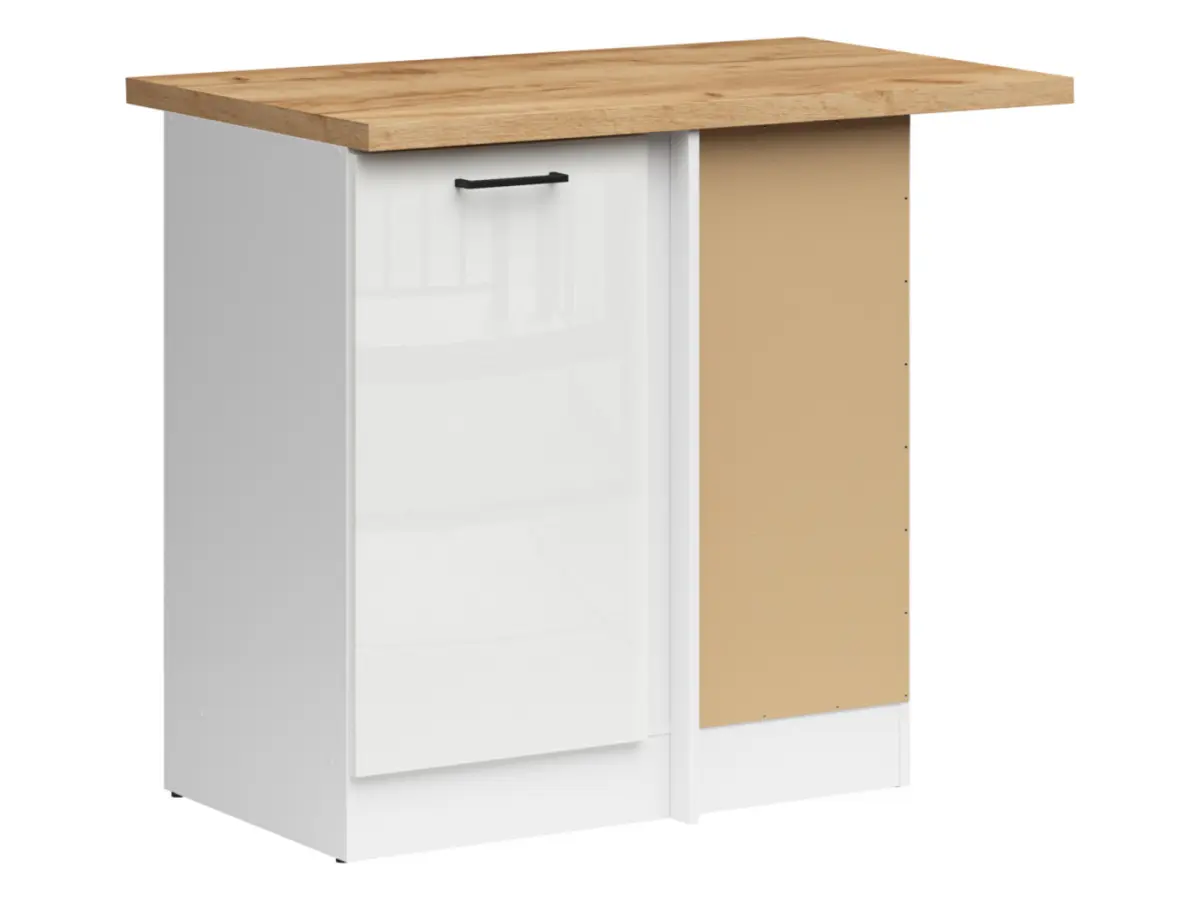 Armario de cocina inferior de rincón Junona Line derecho brillo tiza con encimera para rincón 100x60 cm