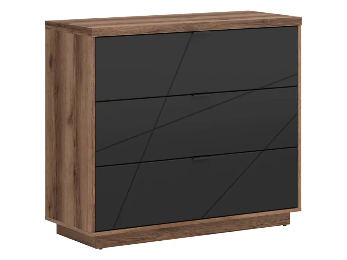 Cómoda Forn 106 cm con 3 cajones roble delano oscuro/negro mate