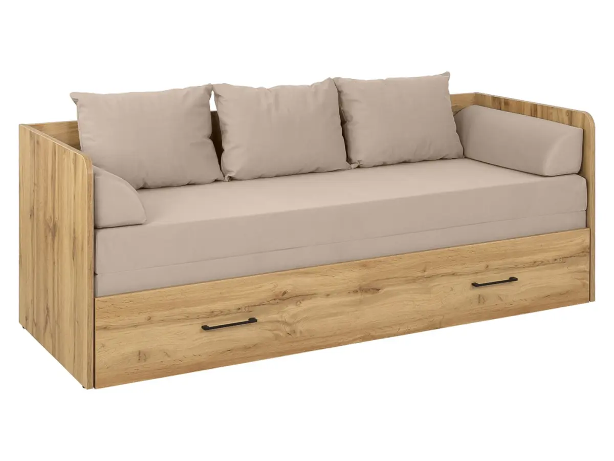 Cama extensible Tetrix roble wotan 80-160x200 con contenedor, colchón y cojines beige