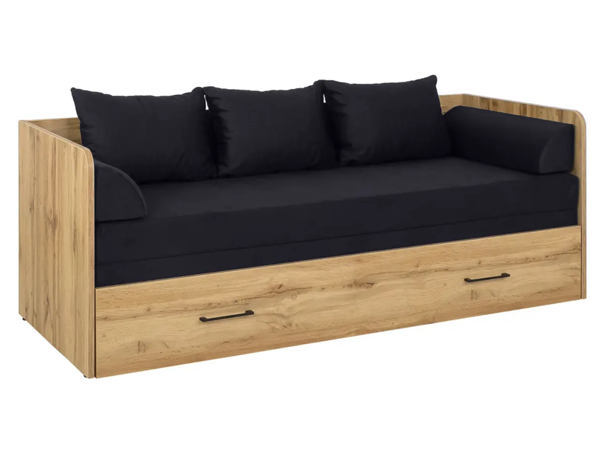 Cama extensible Tetrix roble wotan 80-160x200 con contenedor, colchón y cojines negra