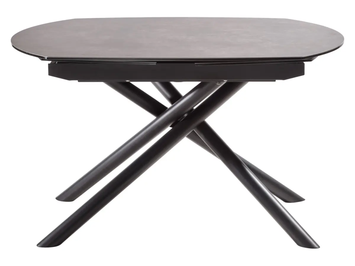 La combinación de negro profundo y antracita aporta a esta mesa un carácter contemporáneo y sofisticado. Su silueta ovalada y la base metálica de líneas finas crean una presencia elegante sin recargar el espacio — perfecta para interiores minimalistas y de estilo loft.