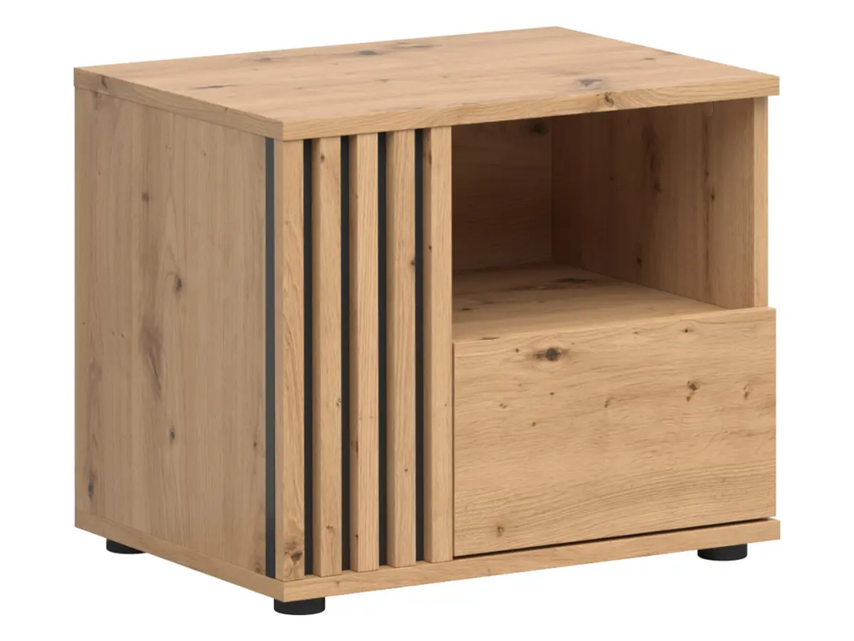 Mesita de noche Vabres 55 cm izquierda con cajón roble artisan listones
