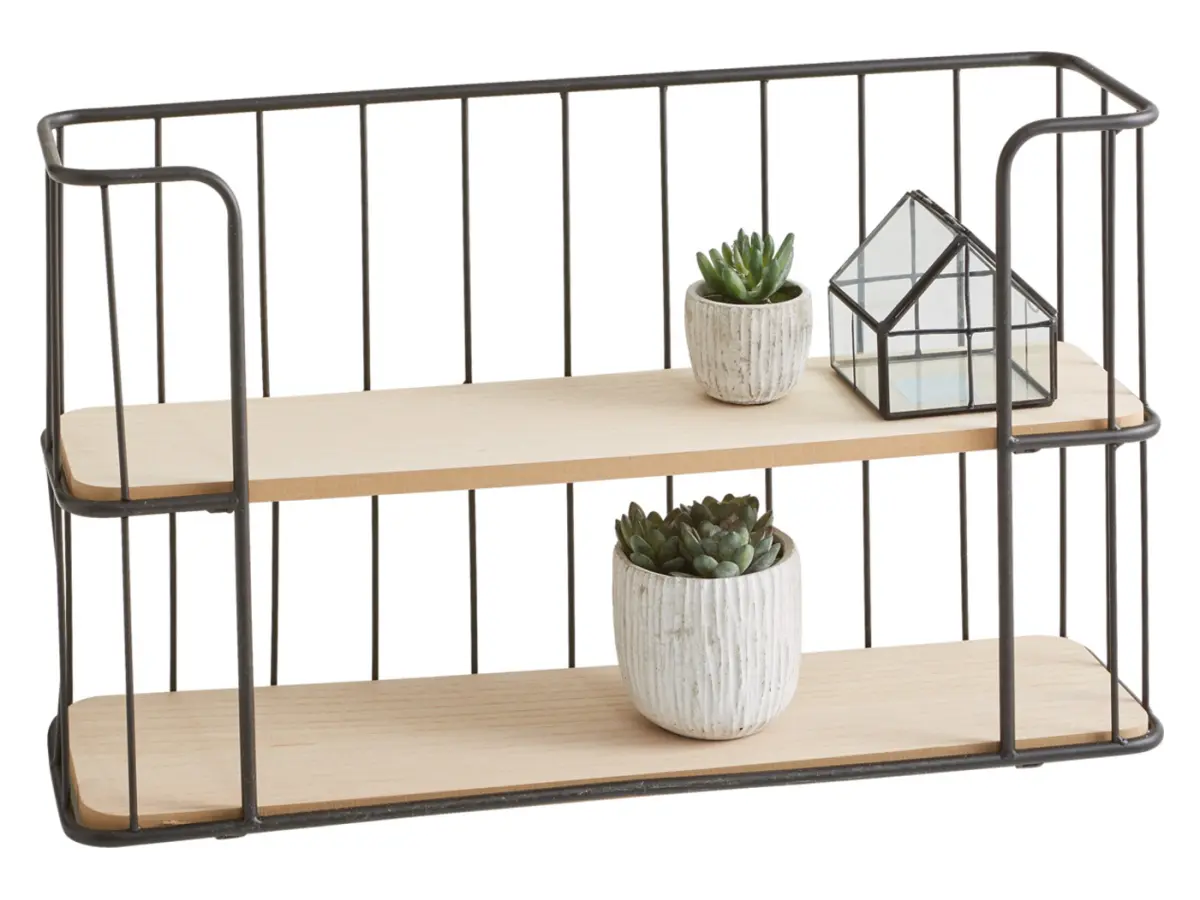 Sus dos amplias baldas ofrecen espacio para todo lo que quieras tener a la vista: plantas, velas, libros favoritos o pequeñas colecciones. Su diseño abierto y ordenado resulta perfecto sobre un escritorio, en el salón o en cualquier rincón que necesite un toque de vida.