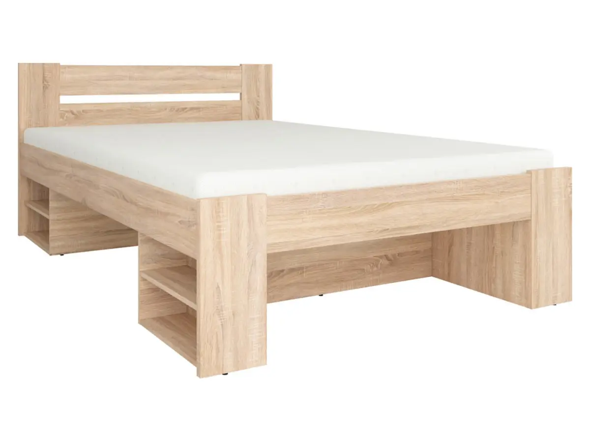 La estructura de la cama incluye compartimentos abiertos de almacenaje y puede complementarse con 3 prácticos cajones, ideales para mantener el orden en el dormitorio sin esfuerzo.