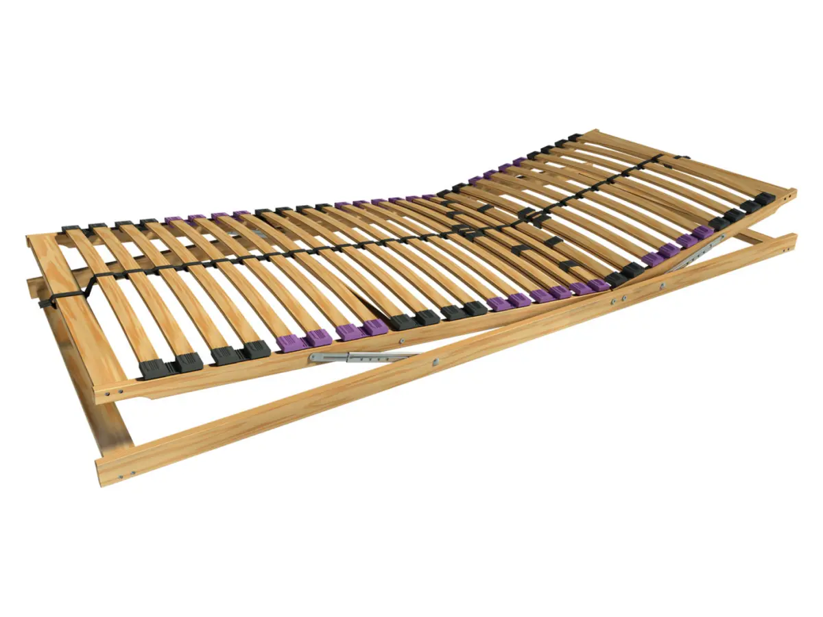 Fabricado en madera laminada, resistente y estable. Sus 28 láminas de abedul flexibles, con una separación de apenas 2,5 cm, se adaptan al cuerpo con suavidad y distribuyen el peso de forma uniforme. Una banda central reforzada aporta mayor solidez donde más se necesita.