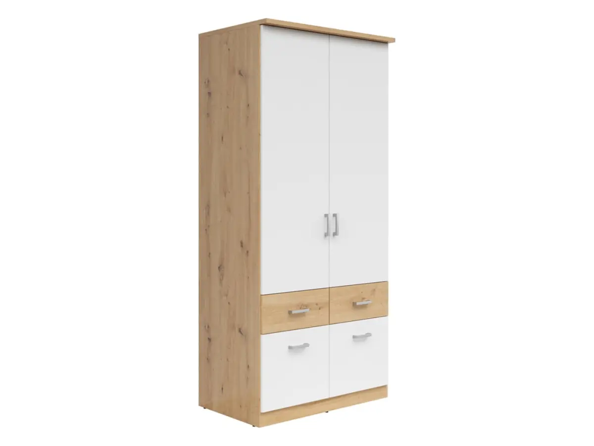 Armario de dos puertas Brando-2 91 cm con cajones roble artisan/blanco