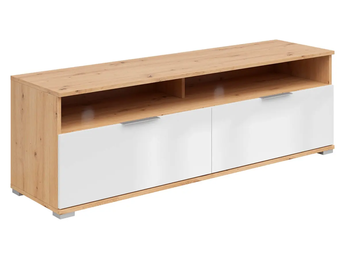 Mueble tv Zele con 2 cajones roble artisan/blanco brillo
