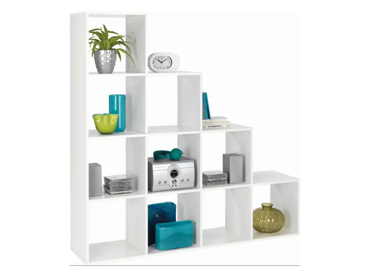 El acabado en blanco ilumina cualquier rincón y crea un fondo neutro, perfecto para libros de colores, plantas y objetos decorativos. Su estructura simétrica y visualmente ligera encaja a la perfección en un salón, un despacho o una habitación juvenil.