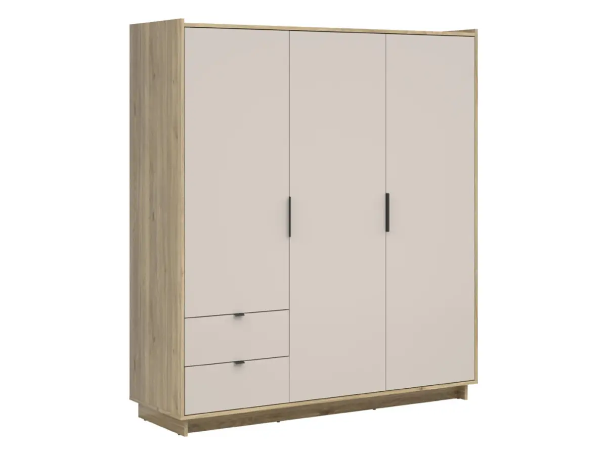 Armario de tres puertas Dalva 180 cm con 2 cajones roble mauvella/cachemira