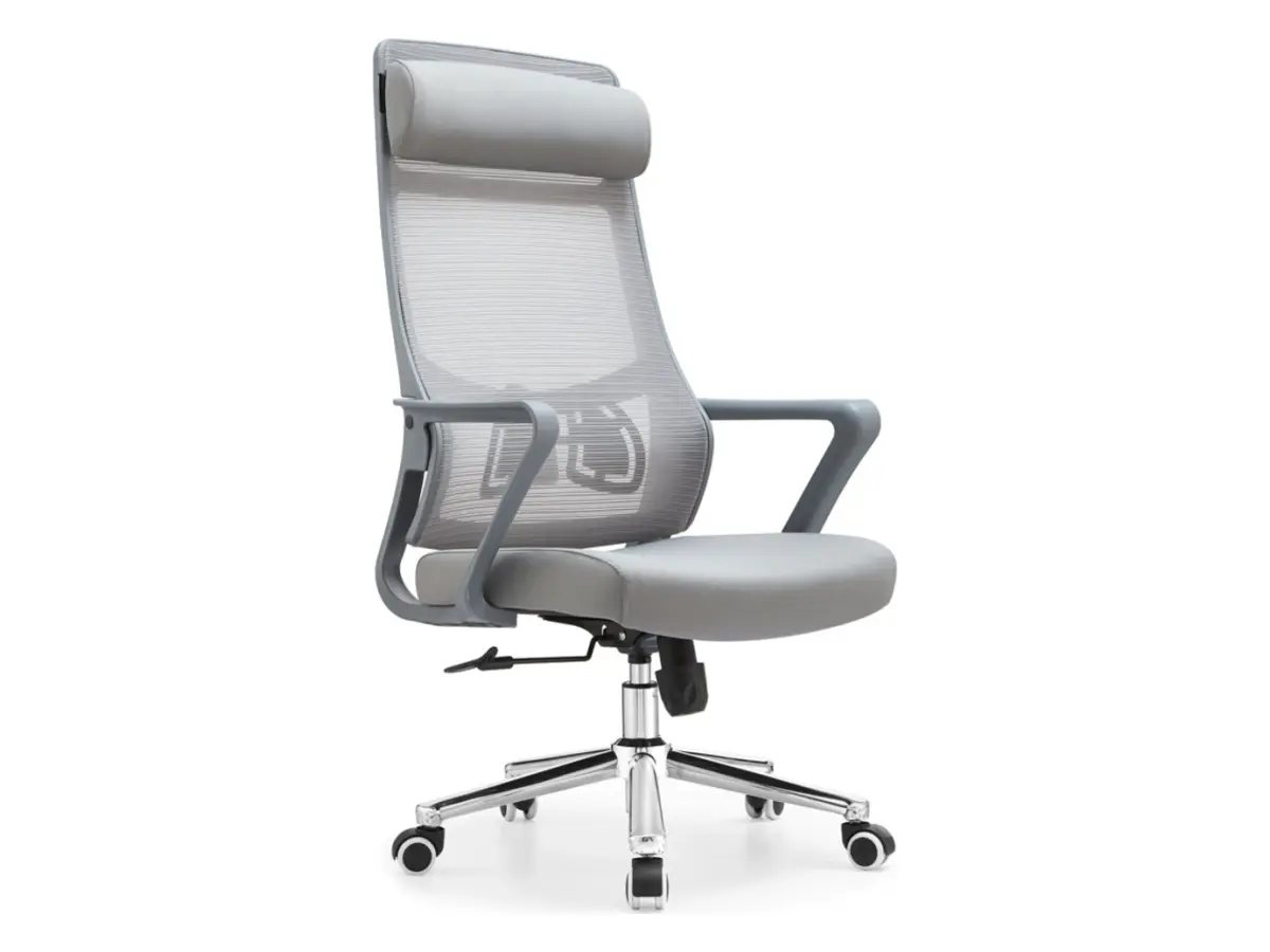 El modelo Luca destaca por su presencia elegante y sobria: su color gris claro, su respaldo esbelto y sus detalles redondeados lo hacen ideal para oficinas minimalistas, espacios de home office o zonas de estudio. Un sillón que se integra perfectamente sin llamar excesivamente la atención.