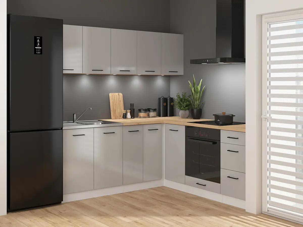 Con su configuración en esquina de 200×200 cm, Junona Line aprovecha al máximo cada metro cuadrado de tu cocina. El conjunto incluye todo lo necesario para equiparla por completo.