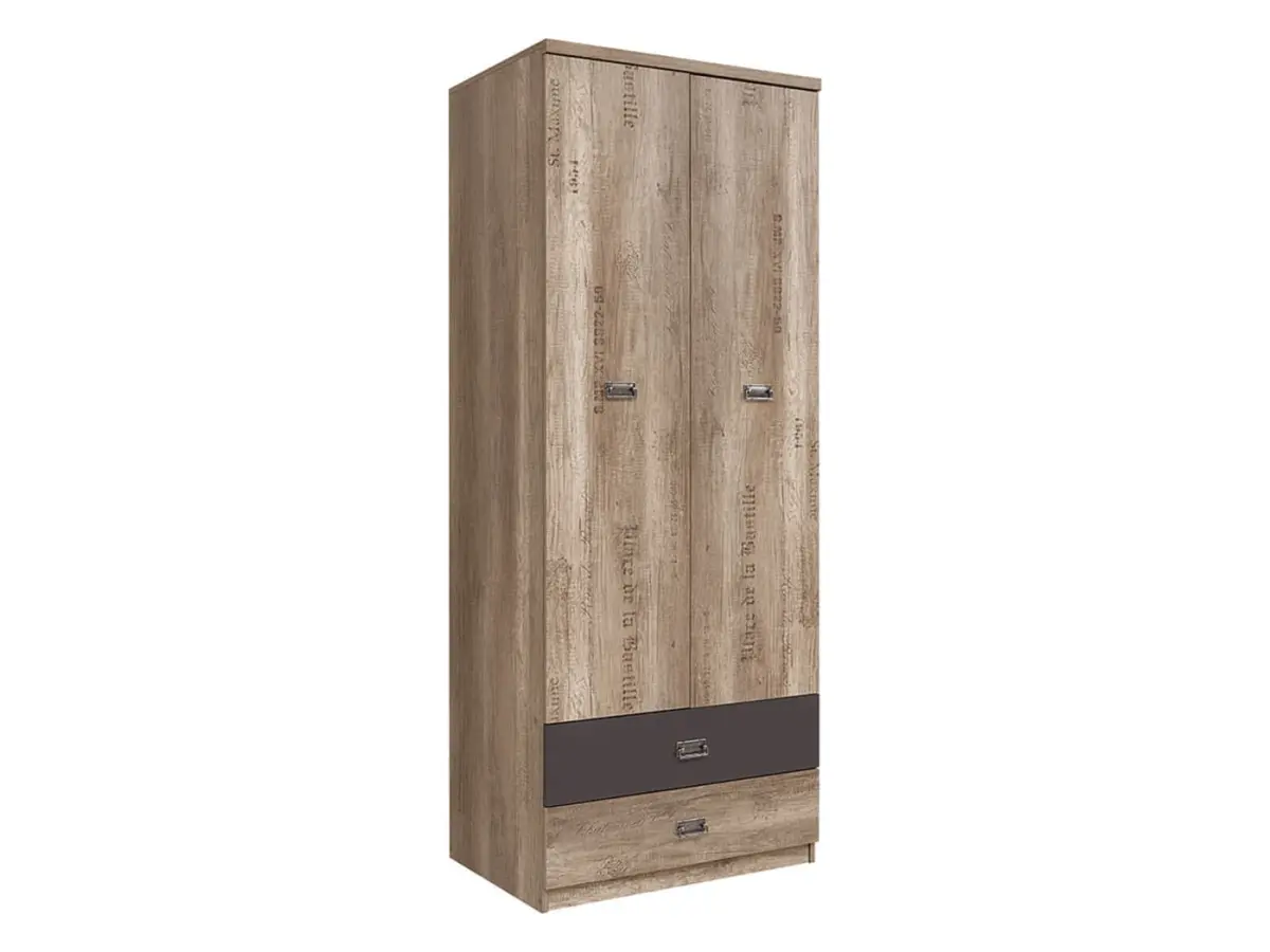 Armario de dos puertas Malcolm 80 cm con cajones roble canyon monument estampado