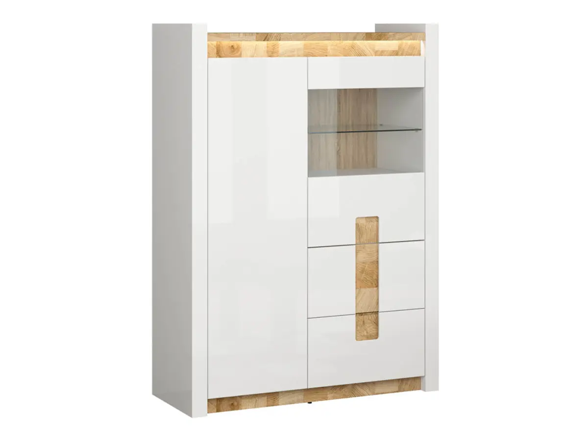 Vitrina Alameda 102 cm con 2 puertas y 2 cajones blanco brillo