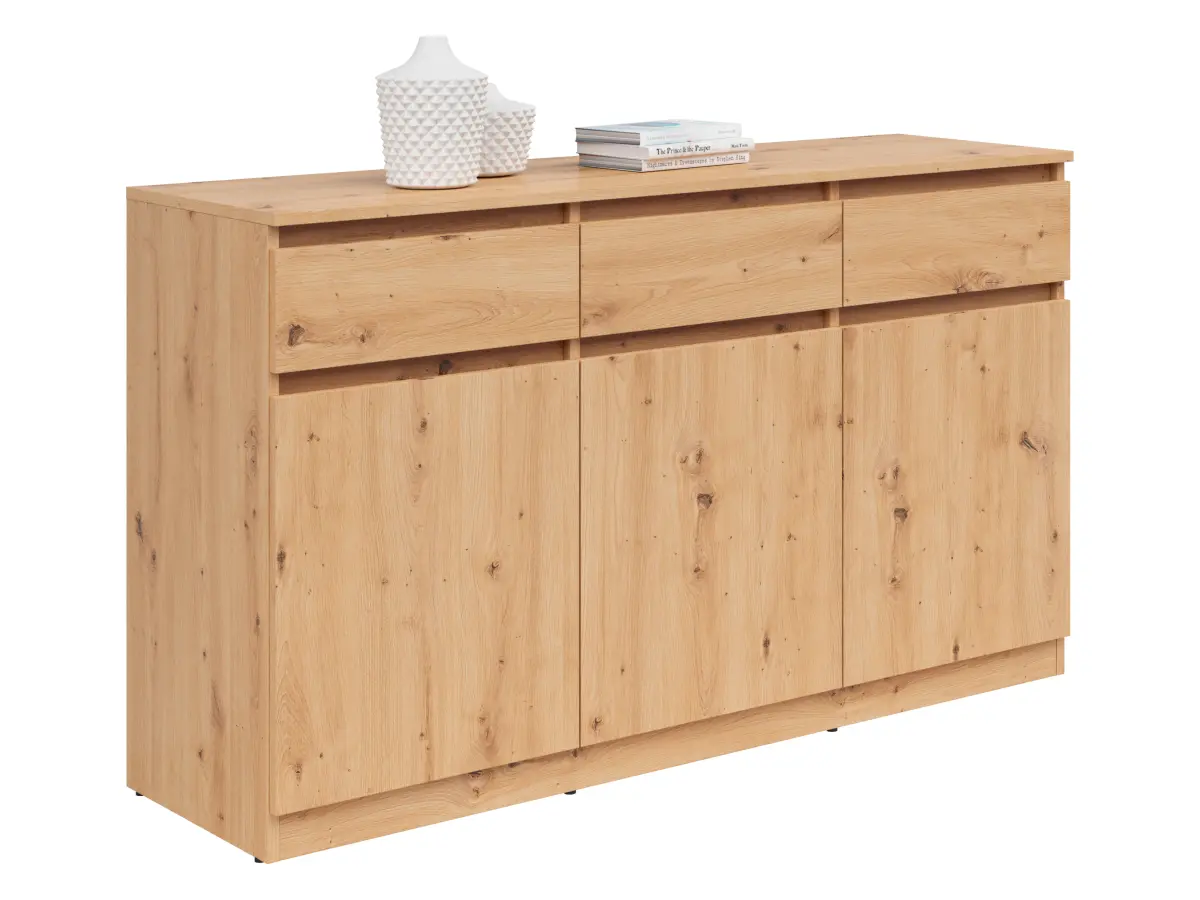 La cómoda Saturn combina líneas depuradas con acabados cálidos que se adaptan a cualquier estancia. Disponible en blanco, roble artisan y roble flagstaff oscuro: tres tonalidades que van desde lo luminoso y fresco hasta lo más cálido y acogedor.