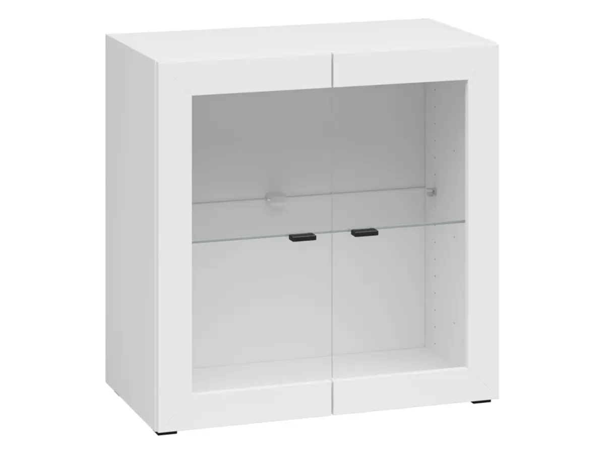 Fabricada en tablero de aglomerado de alta calidad, resistente al uso diario. El estante de vidrio interior aporta una sensación de amplitud y ligereza que resalta los objetos que elijas exponer.
