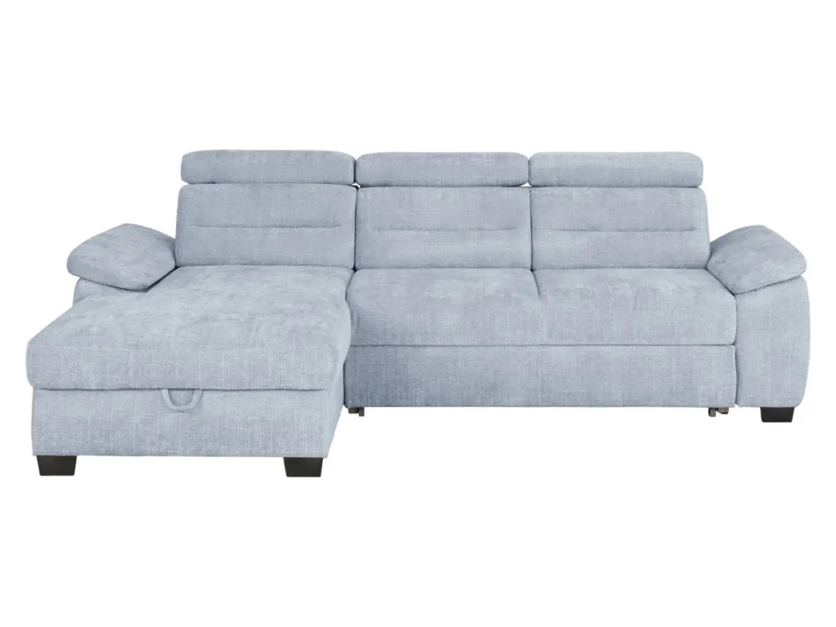 Sofá rinconera izquierdo Aguda convertible con arcón azul
