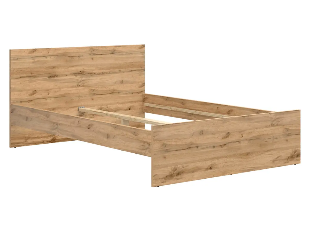 Las líneas limpias y geométricas de Zele responden a la estética de los hogares modernos: sin adornos innecesarios, solo formas que se integran en cualquier espacio. El acabado en roble wotan aporta una calidez natural que hace la habitación más acogedora y resalta la ropa de cama.