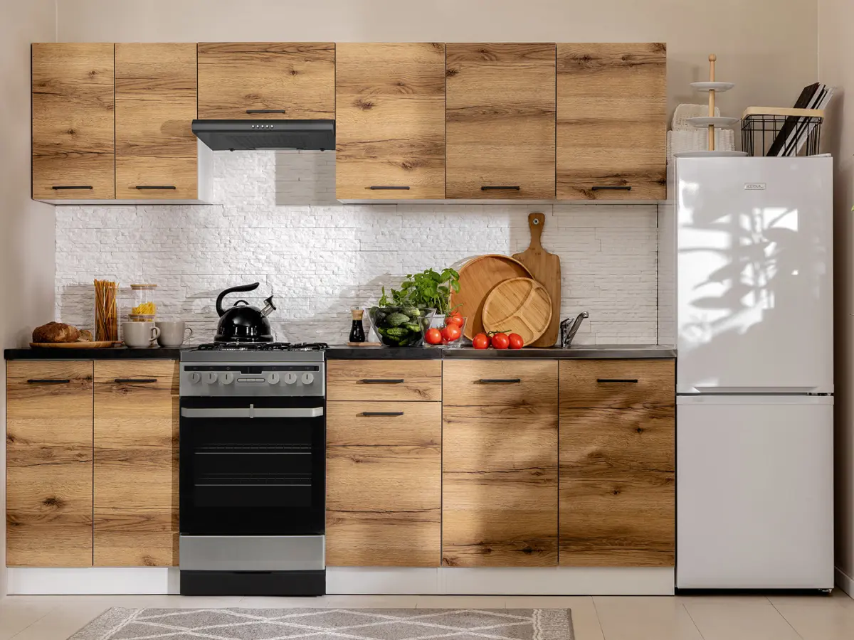 Conjunto de cocina Junona Line 230 cm roble delano claro con encimera