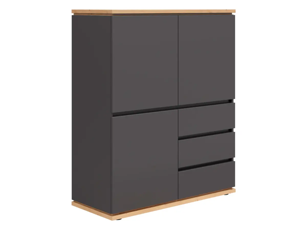 Cómoda Yamael 100 cm con 3 puertas y cajones grafito/roble artisan