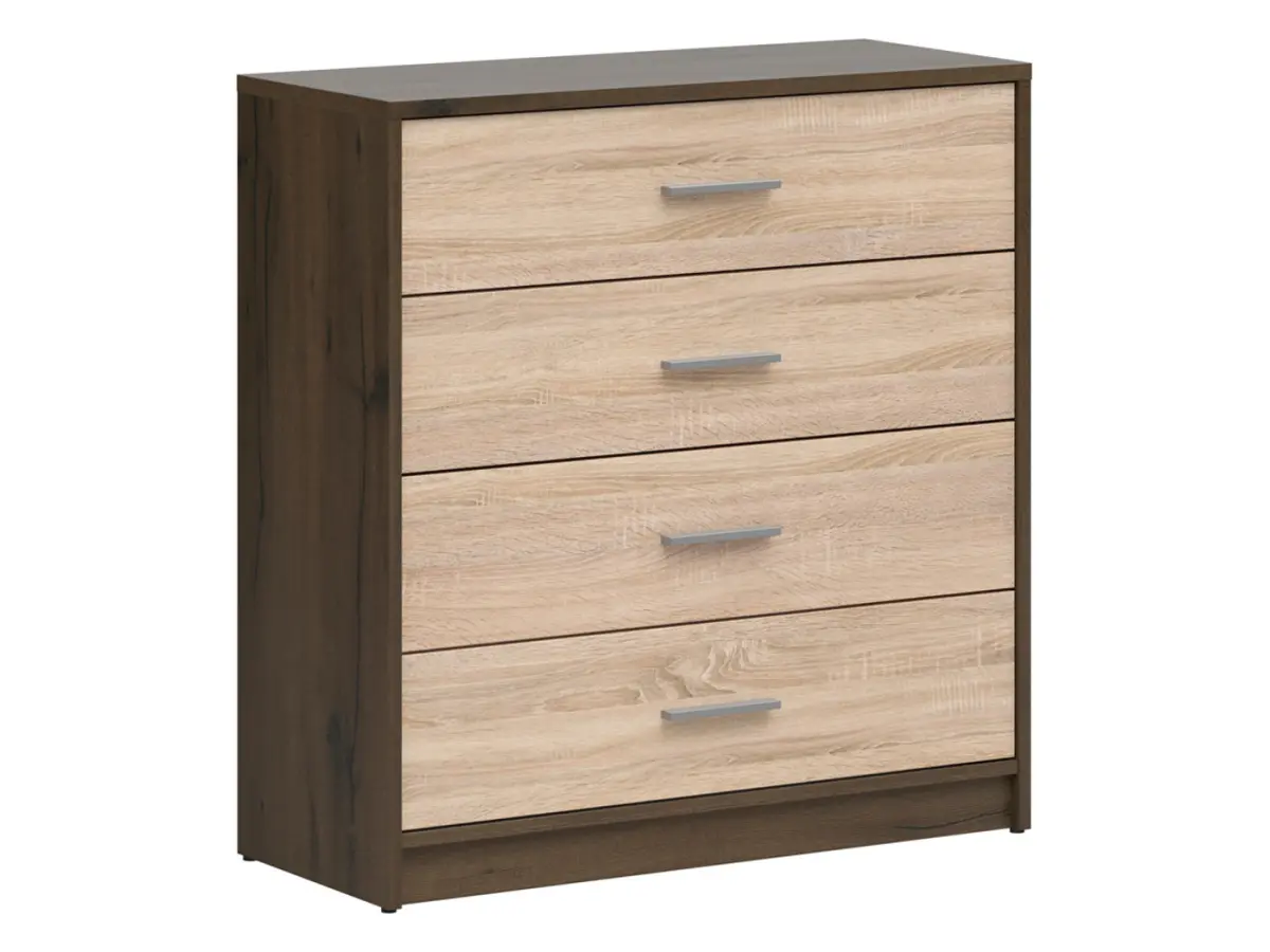 Cuatro cajones amplios listos para organizar ropa, libros, juegos de mesa o material escolar. La cómoda Nepo Plus transforma el caos habitual de una habitación juvenil en un espacio donde cada cosa tiene su sitio.