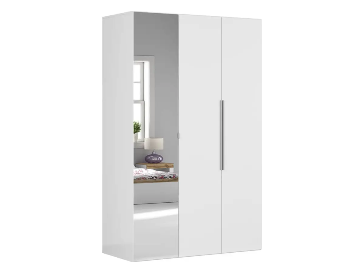El conjunto Flex combina frentes en blanco con un interior en tono gris lino: una combinación limpia y moderna que encaja en cualquier dormitorio o recibidor. El tercer frente incluye un espejo de cuerpo entero, el detalle práctico que marca la diferencia cada mañana.