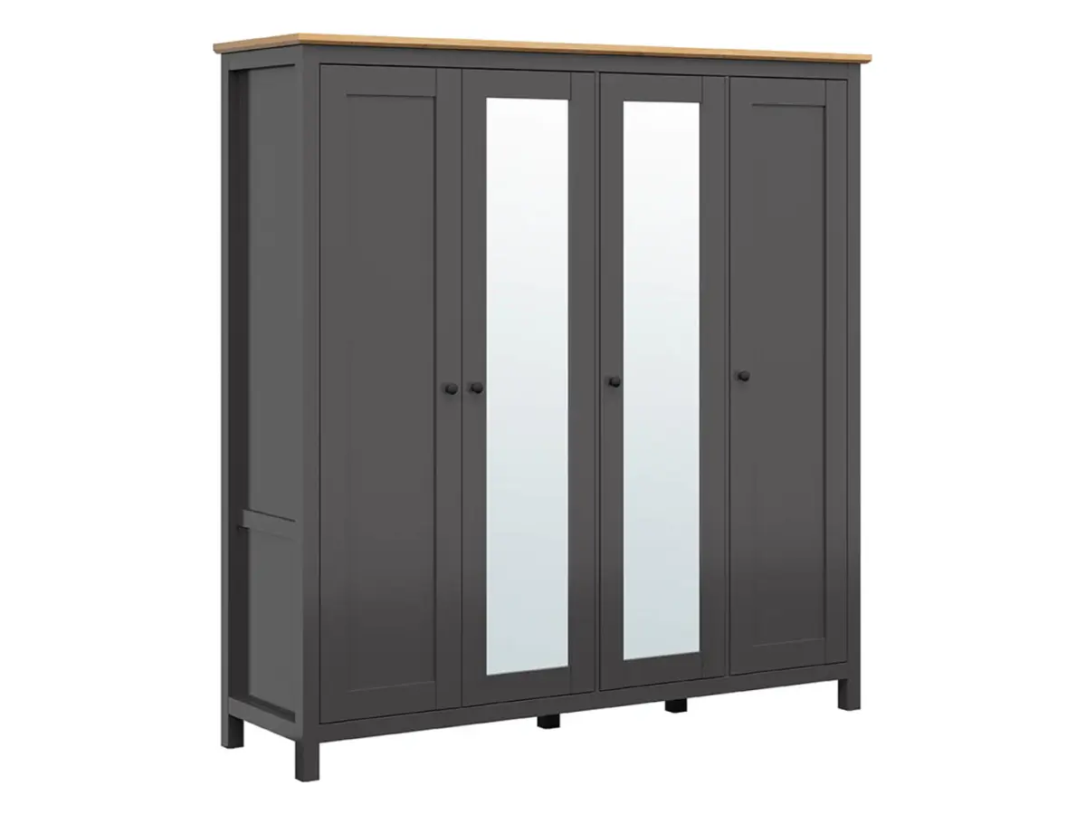 Armario de cuatro puertas Hesen 197 cm con espejo grafito/roble artisan